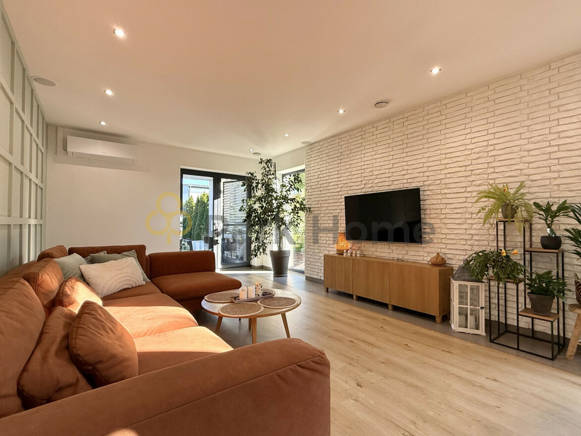 ✔ Reprezentacyjny, jasny salon z bezpośrednim wyjściem na taras — miejsce, które naturalnie staje się sercem domu. Duże przeszklenia wprowadzają dużo światła, a otwarta przestrzeń tworzy idealne warunki do wspólnego spędzania czasu.