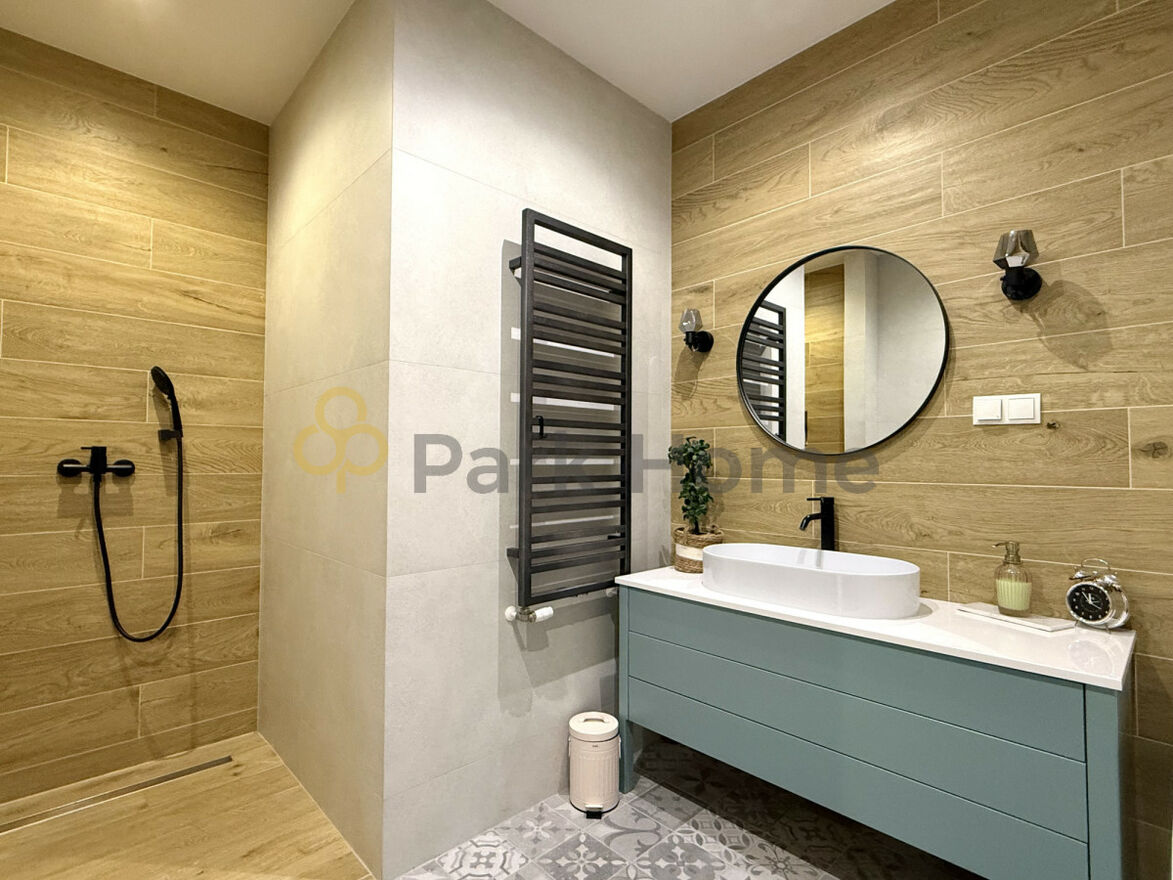 ✔ Dwie nowoczesne łazienki — urządzone w wysokim standardzie, w stonowanych, eleganckich barwach. Jedna z prysznicem walk-in, druga z prysznicem i wanną — idealna zarówno do szybkich poranków, jak i wieczornego relaksu.