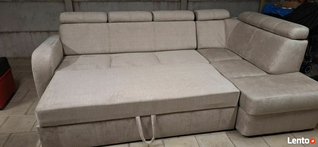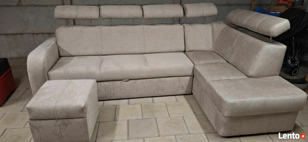 Witam jako producent mebli tapicerowanych mam w ofercie narożnik z funkcją spania i kastą na pościel w którym są regulowane zagłówki góra dół i pod kątem .Narożnik ma wymiary 285 cm na 180 cm siedziska na sprężynie falistej i materacu strefowym co daje duży komfort i wytrzymałość .Tkanina o ciekawej strukturze miła w dotyku w komplecie pufą otwierana z schowkiem .Zapraszam do Wilkowic na ul Święciechowską 78 wykonujemy wypoczynki pod wymiar .Sprawdź zainteresowanie tym ogłoszeniem